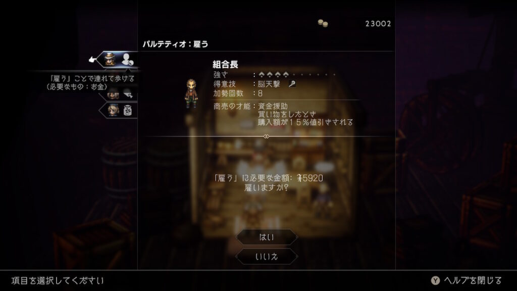 【オクトパストラベラー2】パルテティオ専必見!序盤から雇える買い物上手になれる人々