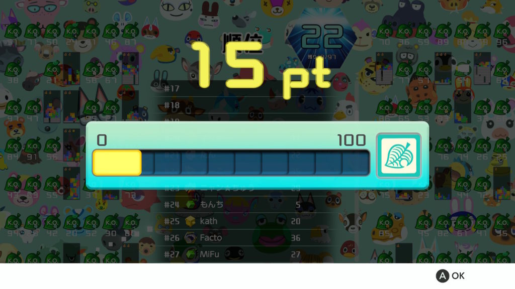 知らない方のために説明すると、ルールはもちろん普通のテトリスがベースなのですが、プレイヤーが自分を含めて99人いてその中で1位を決めるというバトルロワイアル方式で対戦するゲームです。