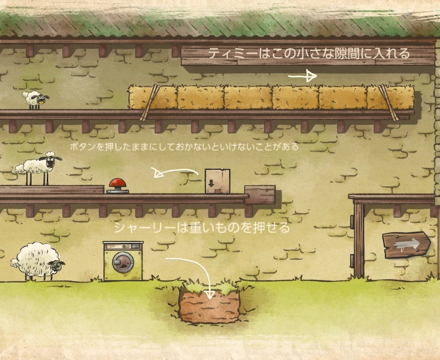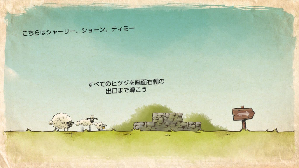 「ショーン」「ティミー」「シャーリー」の3匹を操作して、出口に全員がたどり着くことが目的のシンプルなゲームです。