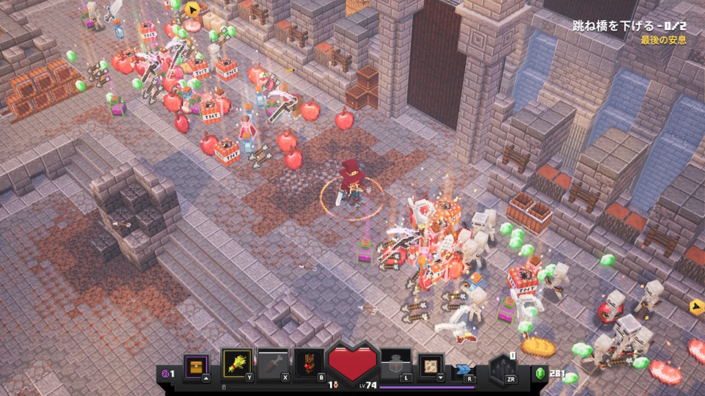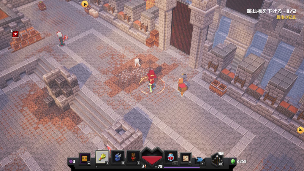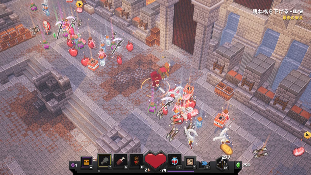 跳ね橋まで進めていくと行くと跳ね橋を下げるミッションが開始されるのですが、レバーを下ろさない限りモンスターが無限に湧き続けるので、あとは橋の前で放置するだけです!