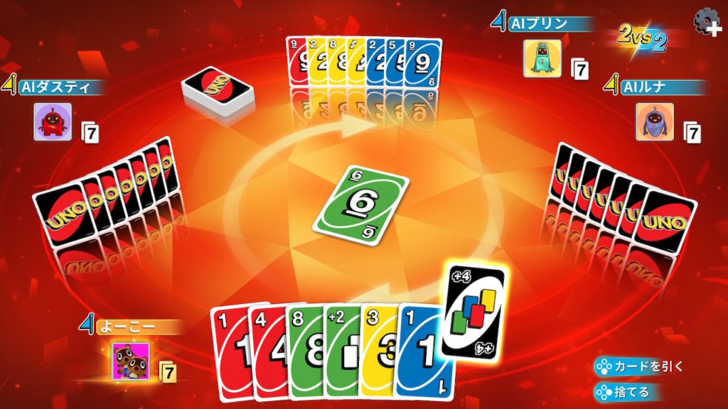 遊んでいた場所によってルールなども変わってくるとは思いますが、このゲーム版【UNO】では公式ルールに則って勝負を行います。