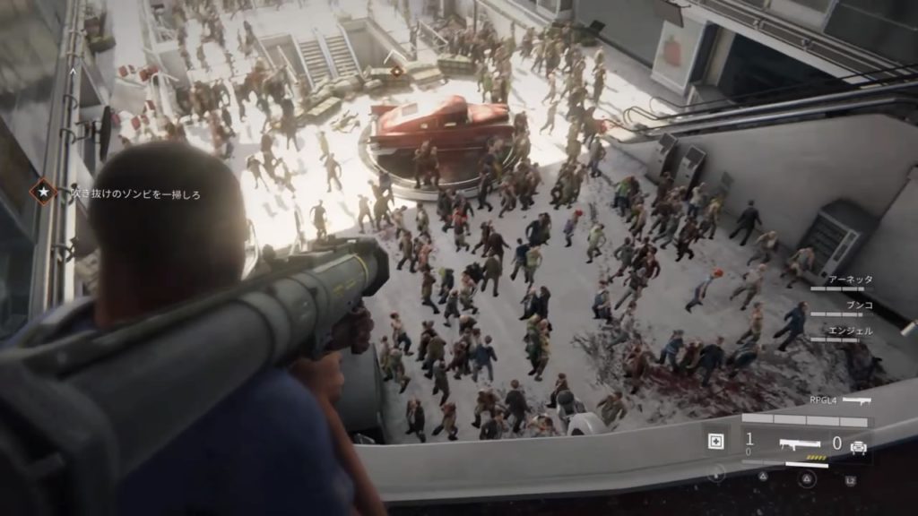 4人1組でおびただしい数のゾンビ達をたおしながら、ミッションをこなしていきます。