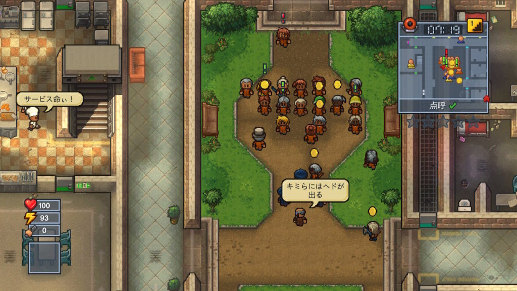 基本的には点呼・食事・自由時間・労働時間・運動時間・シャワーのどれかをこなしていくというような感じで、ステージによって行う時間や場所が変わってきます。