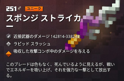そして、この武器の最大のポイントは「吸収した攻撃コンボ中のダメージを与える」という効果がついていることです