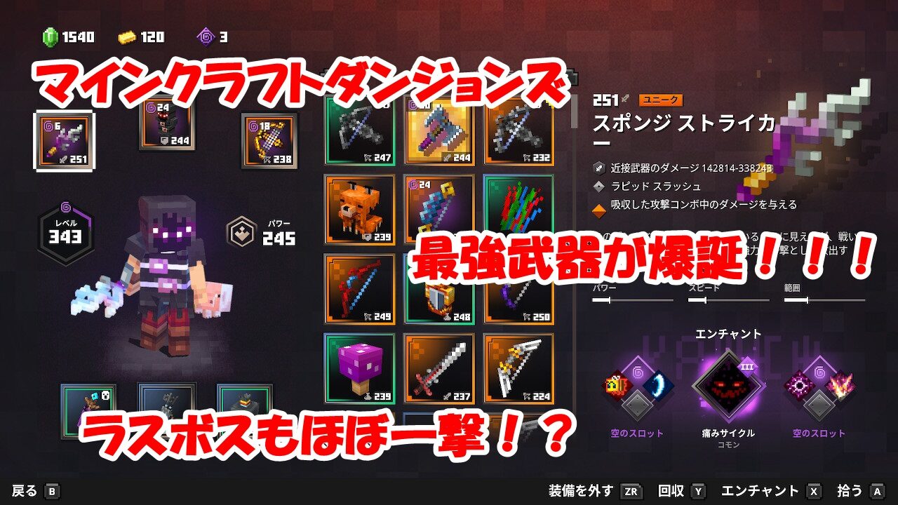 最大火力の化け物!!スポンジストライカー【マインクラフトダンジョンズ】